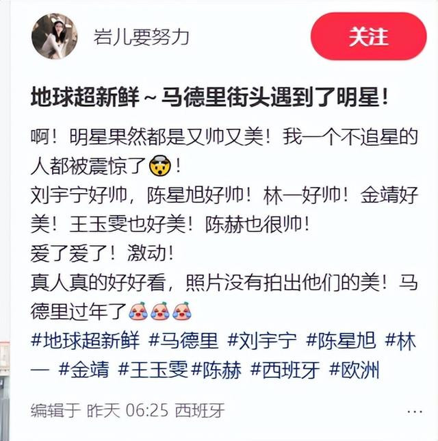 甚至近日的网友,在马德里出门遛弯买东西的功夫偶遇了明星。