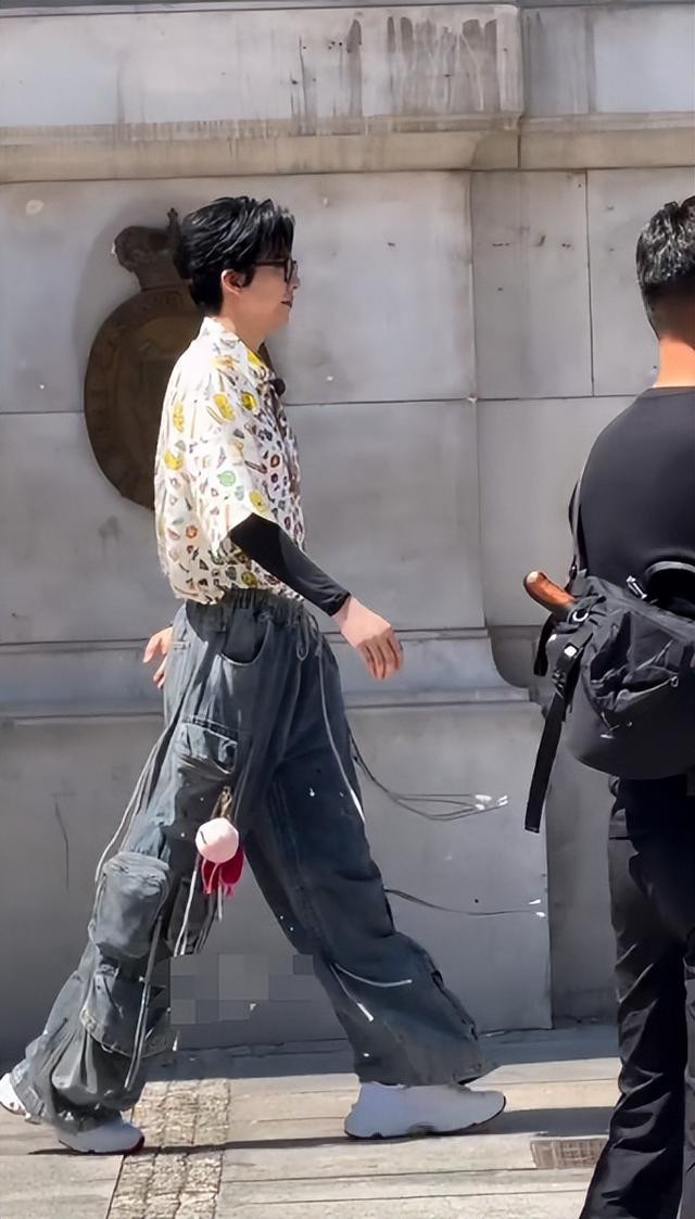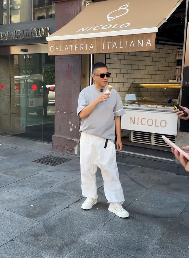穿着一身休闲装在大街上吃冰淇淋,那叫一个惬意,跟之前“大哥大”的形象是天差地别。