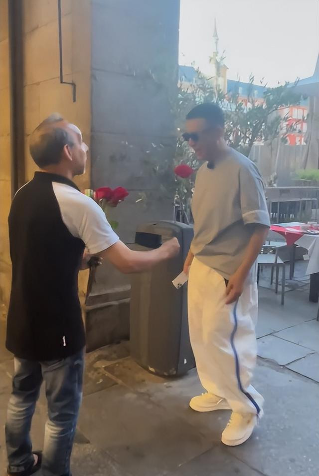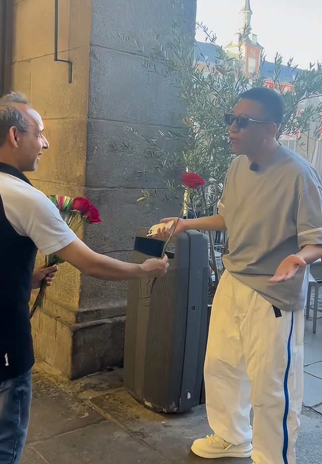 外国友人送他花,他还开始“装”了起来。