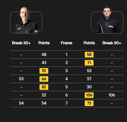 半决赛,塞尔比将迎战肖恩-墨菲。后者以5-1战胜米歇尔-曼恩,晋级四强。半决赛为11胜6局制。