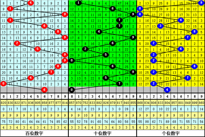 百位推荐:百位最近20期号码012路比为8:6:6,目前0路号码遗漏0期,1路号码遗漏1期,2路号码遗漏3期,另外0-9号码遗漏期数分别为:
