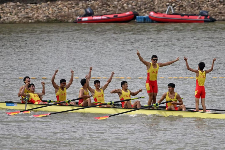 11日上午,十五运会赛艇项目男子八人单桨有舵手决赛,山东组合尹军杰、宗照山、张元泽、刘英灼、邵志强、张松虎、吴凯琦、苏福祥、梁笑通收获冠军。