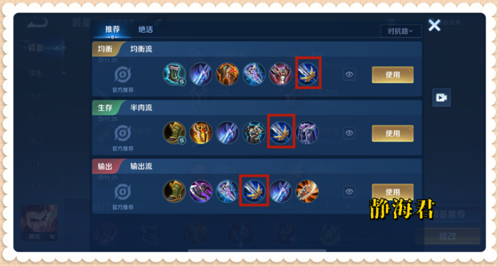 根据游戏内的出装推荐,目前哪吒共有3种不同的出装:
