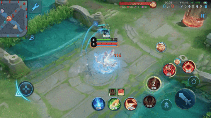 如上图,在释放四技能后,哪吒可以立刻获得敌方所有英雄的视野,且禁止对方回城,光凭这两点就可以开发非常多的战术。另外,因为可以全图飞,所以威慑力会呈线性上升,什么养猪流,在我们神哪吒目前都不在话下。