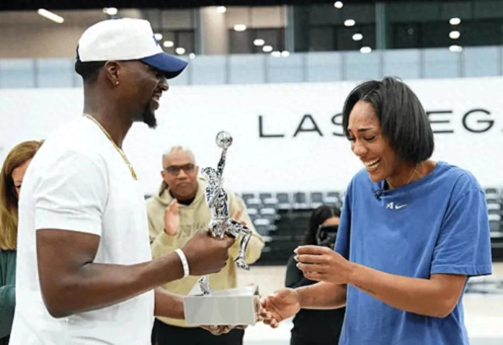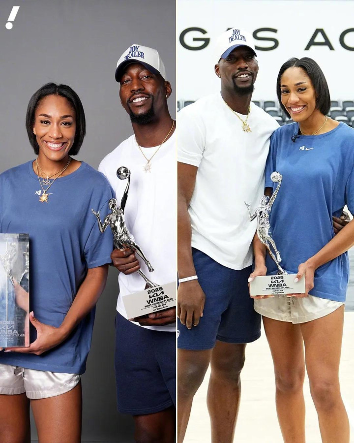 虽然两个人都没有正式官宣,但阿德巴约和WNBA球员阿贾-威尔逊是两口子在圈内已经是公认的事实。阿德巴约在NBA已经是全明星级别的内线,而他的女朋友,在WNBA简直是GOAT级别的人物。