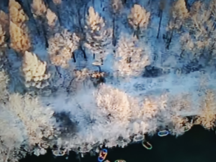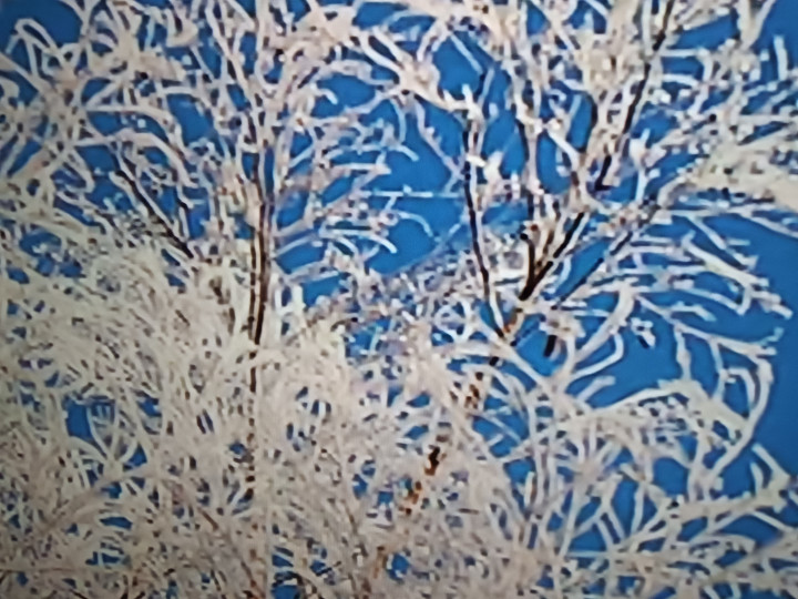玉枝低垂凝霜华,琼花绽放映朝霞。