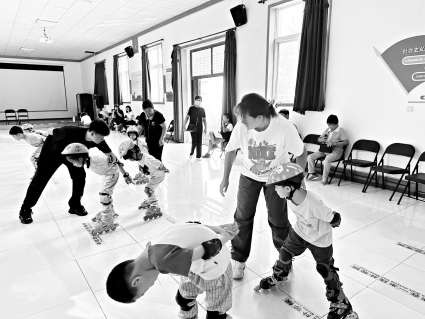 最近,刘景涵在延庆区旧县学校做实习体育教师,教小学生旱地轮滑。“轮滑是冰上运动的基础,也是我们大一的专业课,掌握轮滑的动作和技巧可以帮助初学者在冰上滑得更顺畅。”刘景涵说,去年起,学校和首体院冰雪运动学院建立合作关系,邀请大学生入校教轮滑,从小培养学生对冰雪运动的兴趣。刘景涵还在学校牵头建立了轮滑社团,为学生举办轮滑比赛。